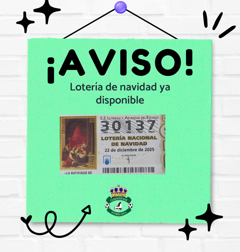 Ya disponible la Lotería de Navidad del Club Patín Bar de Torredonjimeno. Podrás adquirir tu décimo poniéndote en contacto con cualquier miembro del club, o en el Restaurante Bar Patín de Torredonjimeno, situado en la Avda. de Andalucía Nº 8.